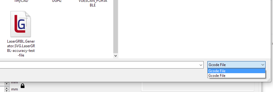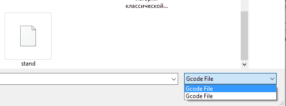 Open file dialog, file type menu - shows two identical values: Gcode file/Gcode file:
